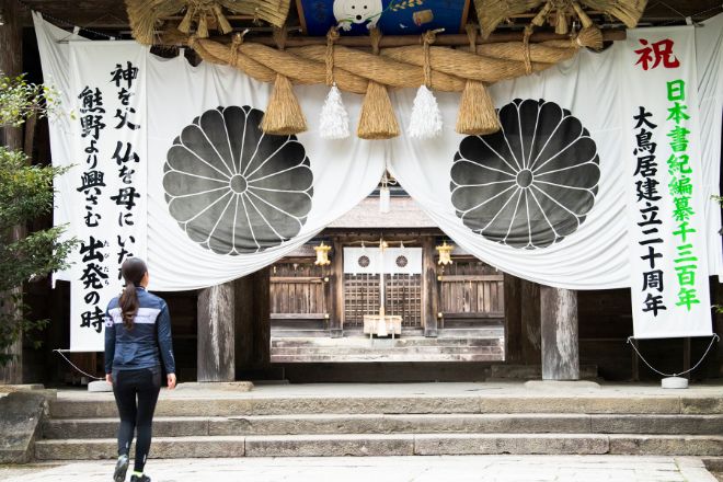 最後は熊野川沿いの国道168号を走り、熊野本宮大社へ。神々しい自然を感じながら、他の地にはない特別なライドができる