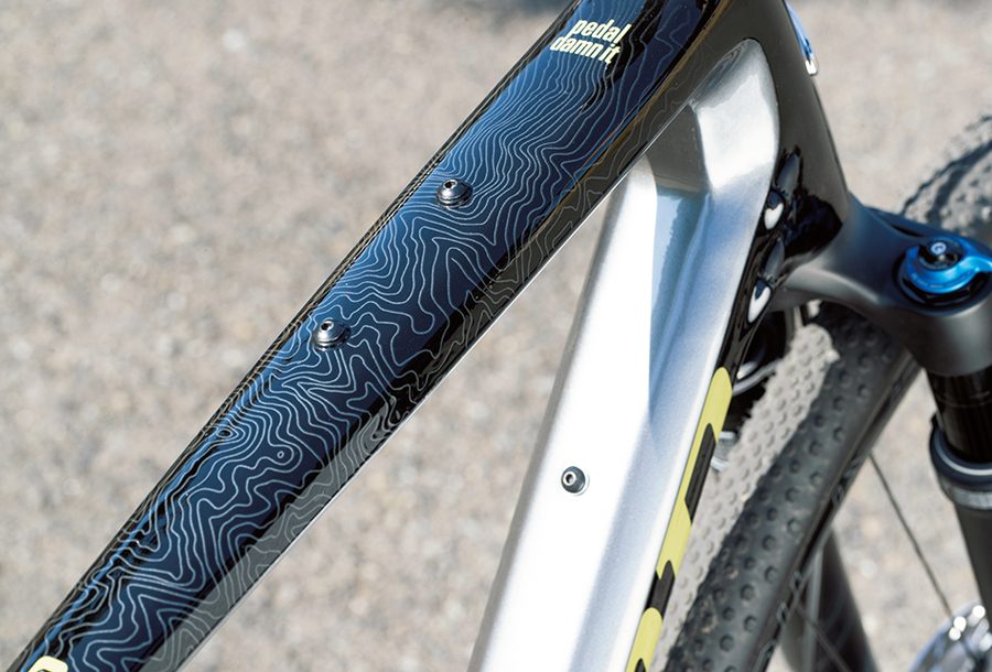ロングツーリングでの使用も考慮して、トップチューブ上部にはバッグを取り付けできるボトルケージ台座を設けた。