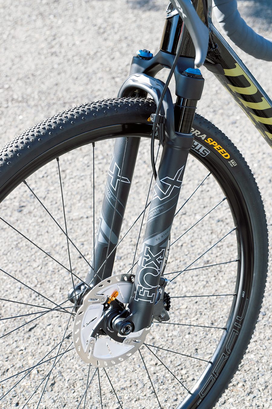 FOXと共同開発した40mmストロークのフロントフォークを採用する。剛性も十分でシングルトラックでも安定したハンドリングが可能だ。タイヤは700Cであれば50Cまで、650Bホイール使用時は、2.0まで使用できる。
