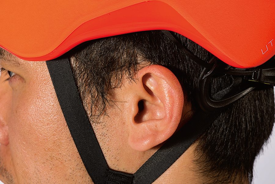 ヘルメット両サイドの形状を最適化し、風切り音を発生しにくくしている。チンストラップは洗濯可能なエコレザー製。肌への刺激が少なく快適だ。