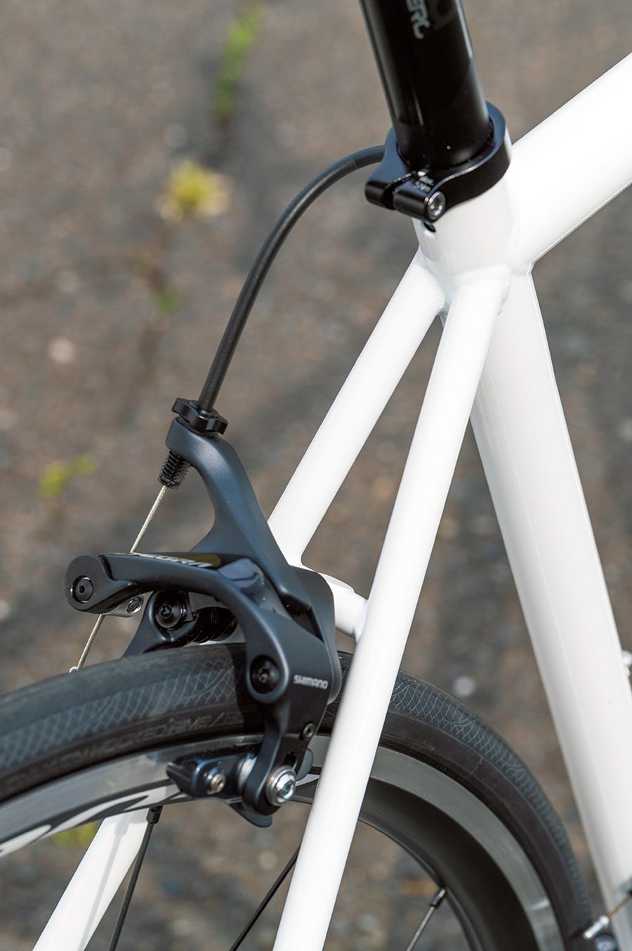 トラディショナルなシルエットのスチールロードだが、フロントフォークはカーボン製でテーパードヘッドを採用。必要な部分に現代のテクノロジーを盛り込むことで、走りの質を高めている。ケーブルのルーティングは伝統的な外装式でメンテナンス性にも優れる。