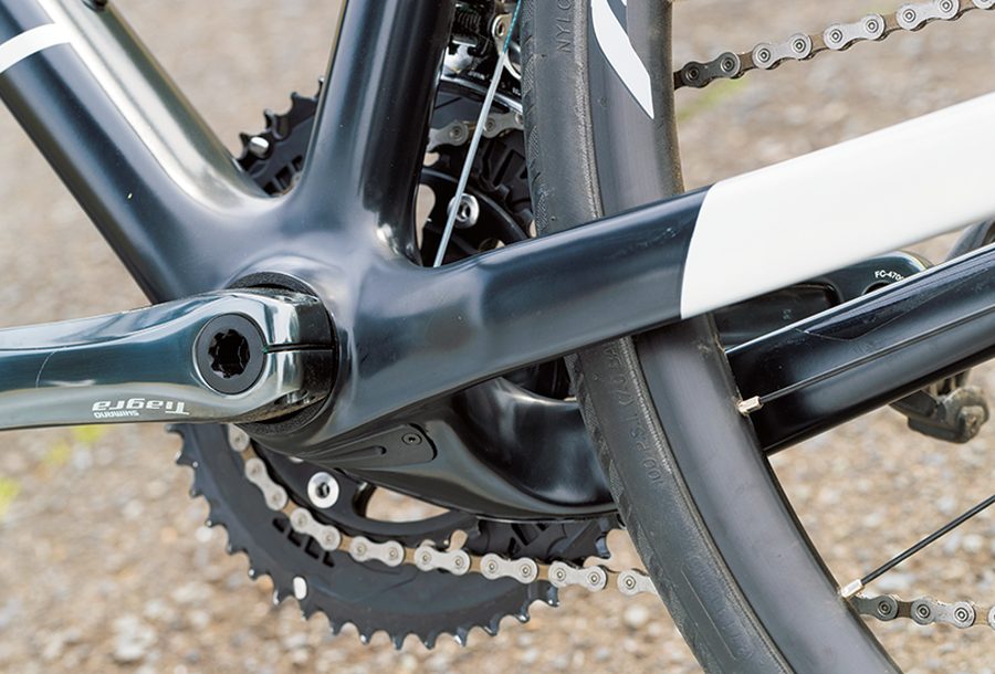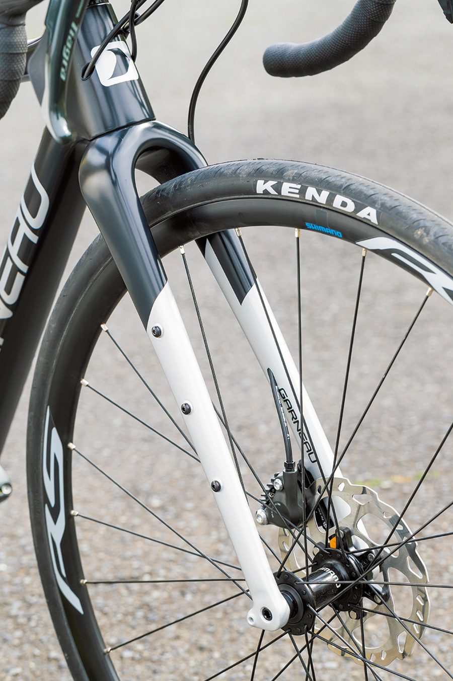 特徴的なのは走行安定性に優れたジオメトリーをもつフレームだ。標準的なロードバイクよりも20mmほど延長したリアセンターにより、オンロードから未舗装路へとボーダレスにライディングを楽しむことができる。最大40Cのタイヤも使用可能で、よりハードな路面にも対応できる。