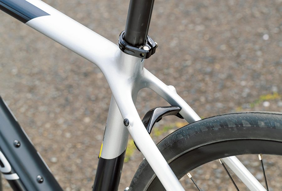 振動吸収性を高めるためにトップチューブからシートステーにかけて垂直方向に薄い形状を採用した。シートステーのブリッジは樹脂製で、フェンダーを取り付けるために用意される。