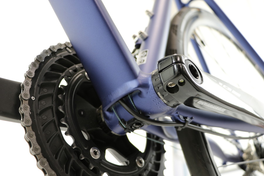 フレームは欧米人と比較して小柄で手足が短めな日本人に合わせたフレーム設計が特長です。重量剛性比の高いアルミ合金にトリプルバテッド加工を施したパイプで構成され、地面からの突き上げを和らげる横方向に扁平加工したチュービングを取り入れています。スムースウェルド工法を用い、2 重の溶接を施し手作業で溶接部の凹凸を研磨することで応力集中の原因となる溶接部の急激な肉厚の変化を除去しています。