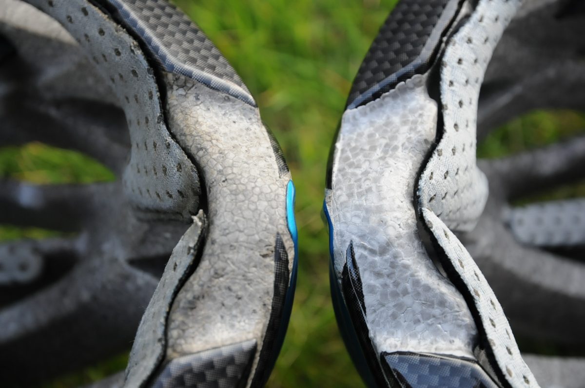 しかし、ライナーをよく見てみると、左側の使用後のものは、汗や紫外線で劣化しているのがお分かりいただけるかと思います。