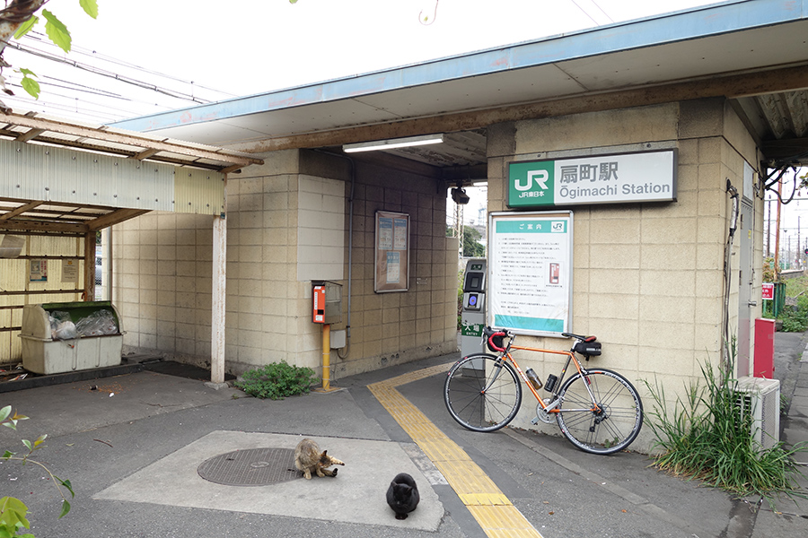 鉄道マニアに有名な都会の秘境、JR鶴見線の終着駅。ほとんどトイレぐらいの建物の前で猫がごろごろしていた