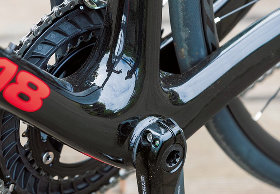 幅広のプレスフィットBBにより接続するダウンチューブやチェーンステーも含めて剛性を確保したことで、ペダリングの力を効率よく伝達する。