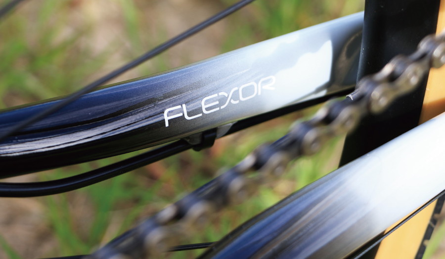 フレームに 4 箇所、フォークに 2 箇所のボトルケージ台座を装備し、高い積載性がさまざまなスタイルのツーリングライドに対応しています。フレームリア部に快適性を向上させる振動吸収機構「FLEXOR(フレクサー)」を搭載しました。シートステーとチェーンステーを横扁平に加工することで、リア部が縦方向にしなりフレーム自体が柔軟に路面に対応します。