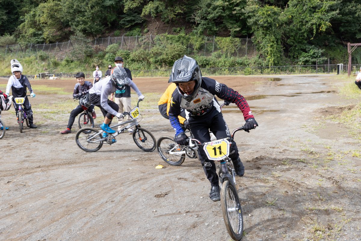 BMXで起こりうる選手同士の接触に備えて前後左右の幅を詰めた走行を指導(秩父)