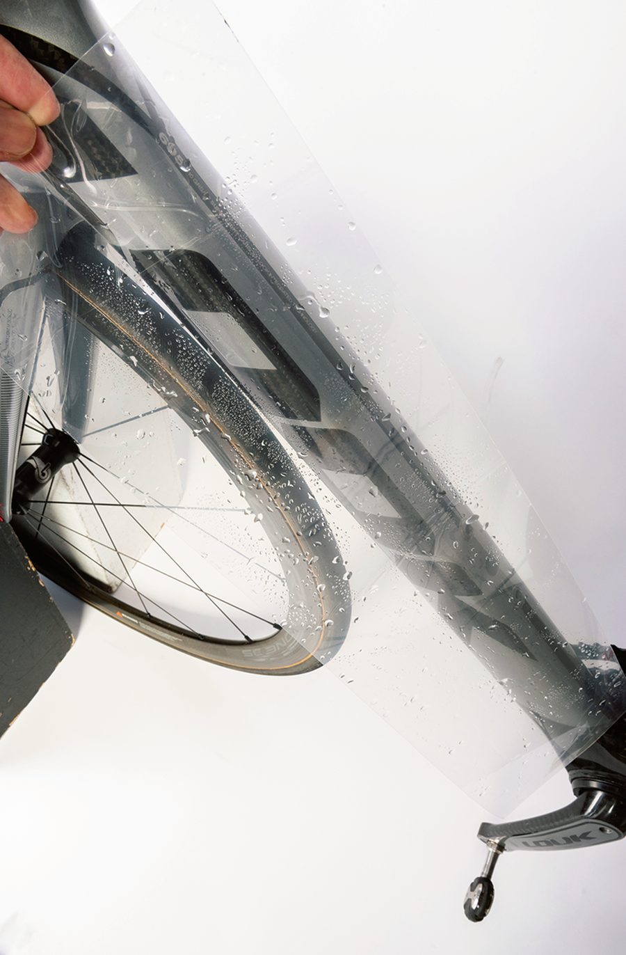 「シンクシールド」とは世界31カ国で展開する洗車のプロフェッショナル『洗車の王国』とのコラボレーションで開発された自転車用PPF(ペイントプロテクションフィルム)。もともとは自動車用のものだったが、これを自転車用に最適化。