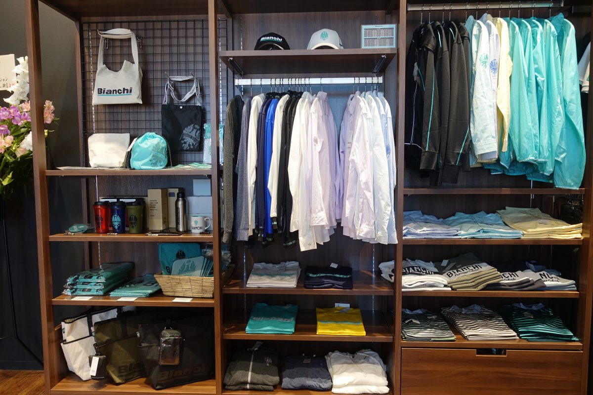 ビアンキにまつわる普段着からレーシングアイテムまで幅広く販売