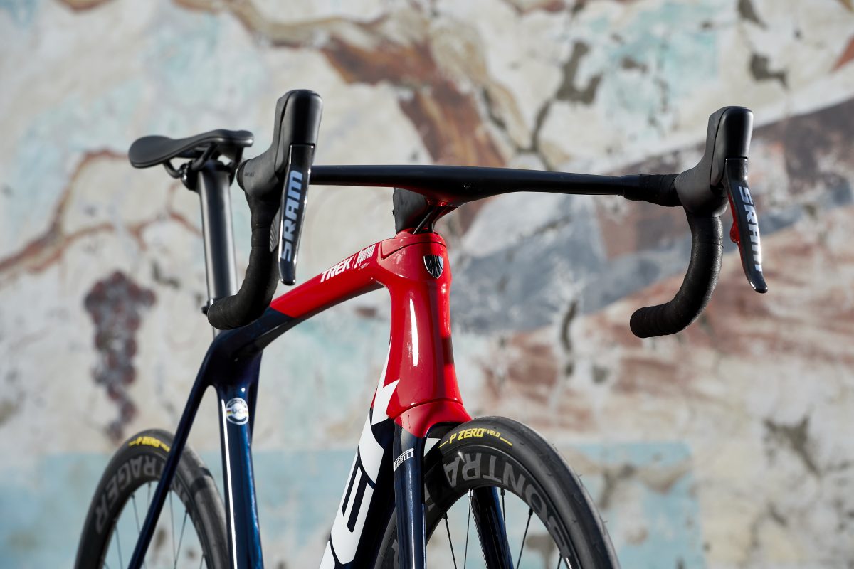 軽量カーボンバイクとして正統派の造型だった前作から大幅に進化したフレームのシルエットに、トレックの意気込みが伝わってくるバイク。エアロダイナミクスに優れたフレームやケーブルがほぼ完全に内装されたコックピットまわりから、軽量ロードの新たな時代を感じることができる。