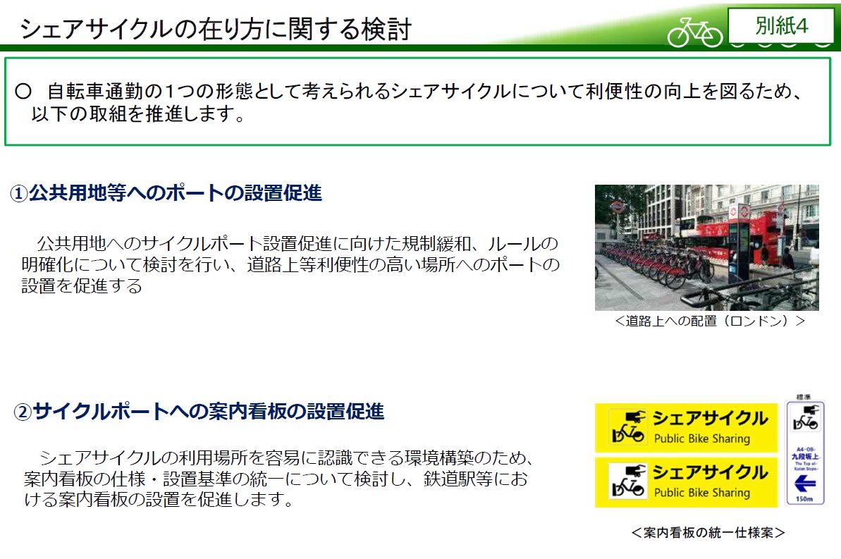 通勤の1つの形態として考えられるシェアサイクルについて利便性の向上を図るため、以下の取組を促進します。