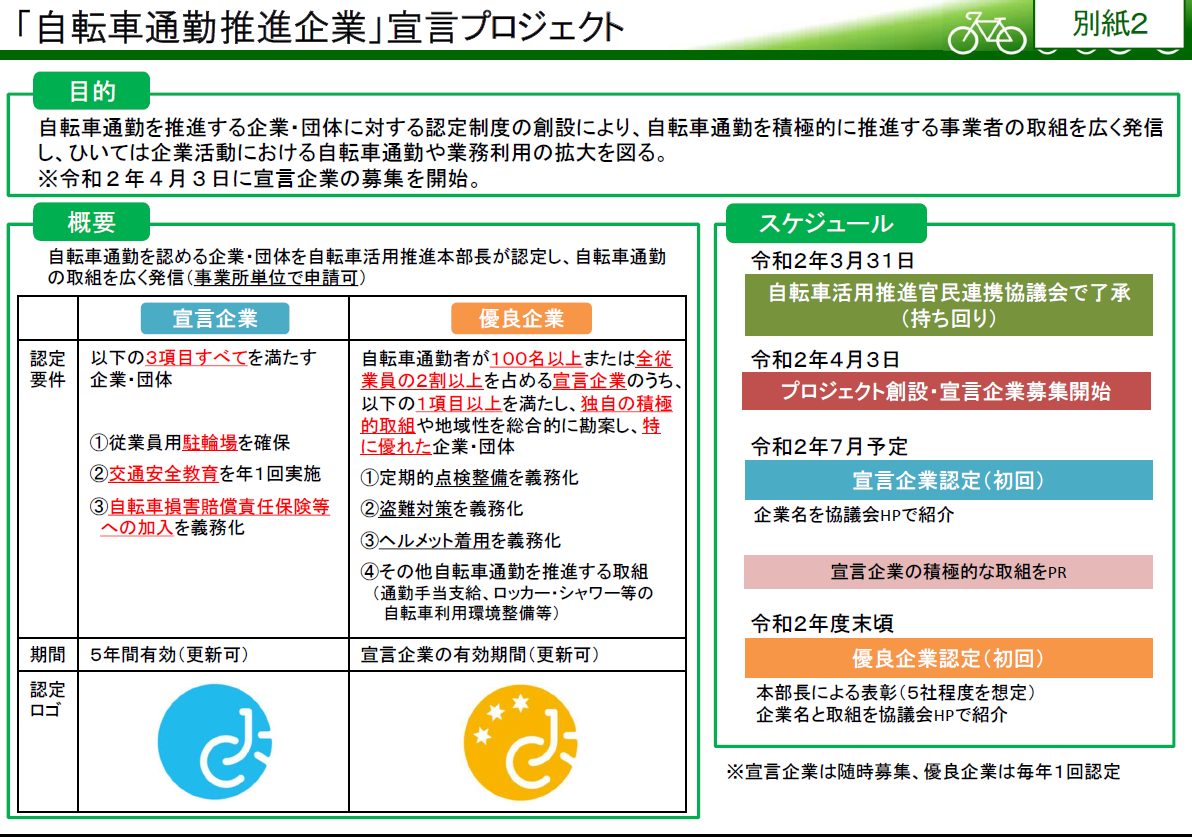 (2)「自転車通勤推進企業」宣言プロジェクト(別紙2)