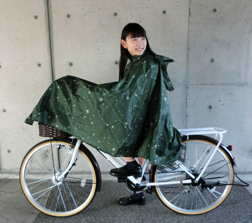 通勤・通学に便利なバックパックを背負ったまま切れるレインコート。 ハンドルを持つ、手の甲も濡れない2WAYカウス仕様。 透明フードで視界も安心。自転車走行に安心な前後リフレクター(反射テープ)付き。
