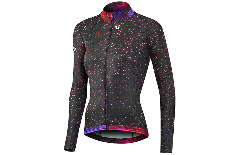 リフレクティブパターンがプリントされた、カラフルなグラフィックのウインドジャケット。素材にProTextura™を使うことで、防風、防水性が高い。さらに、リフレクティブパターンをデザインの一部に仕立てたユニークなグラフィックになっており、ナイトライドでの安全性を向上させている。