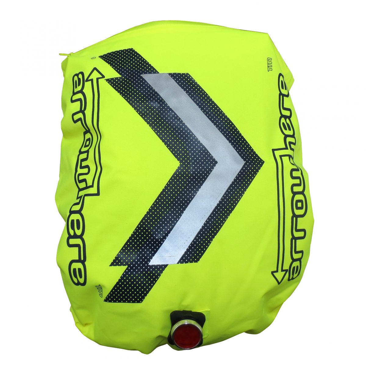 創設者が夜間帰宅時にリフレクターベストを着用していても、クルマがうまくよけてくれない実体験から生まれたカナディアンブランド「arrowhere」 背中の大きな矢印型リフレクターのデザインは400m後方からも視認でき、ドライバーによけてもらいたい方向をアピールできるようにという思いが込められている。