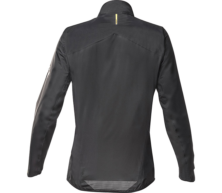 再帰反射パイピングが、視認性と安全性を高めるレインジャケット。身頃には非常に薄く柔らかい防水素材を採用しており、体にしっかりフィットし空気抵抗を抑える。トレーニングライド等の使用を考慮し、脇部分はメッシュ、背中部分にはベンチレーション完備で、 防水性を保ちつつも通気性が良くムレにくい仕様になっているので、本格的に走る人向け。