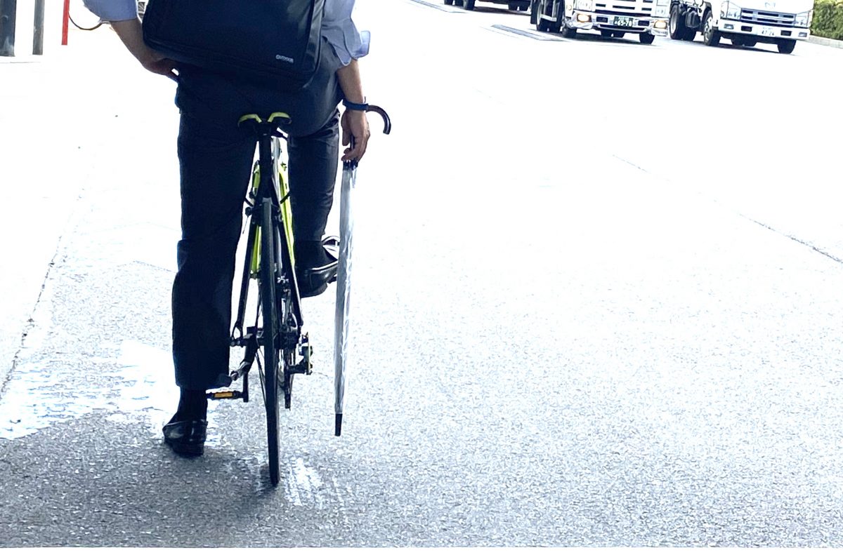さすがにロードバイクで、傘を差しながら乗ることはないと思うが、一般的な自転車では残念ながら普通に見かける光景だ。