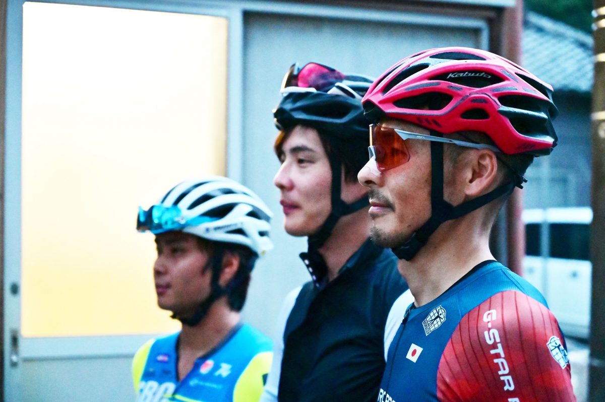 今回、チャレンジしたのは⽇本トップレベルのアマチュアサイクリストの手前から⾼岡亮寛さん、⽥中裕⼠さん、紺野元汰さんの3人だ。紺野さんは高岡さんと同じく、ツール・ド・おきなわの覇者、そしてグランフォンド世界選手権で入賞している強豪で、田中裕士さんは富士ヒルクライムで優勝するなど、日本でも屈指のクライマーとして知られる。