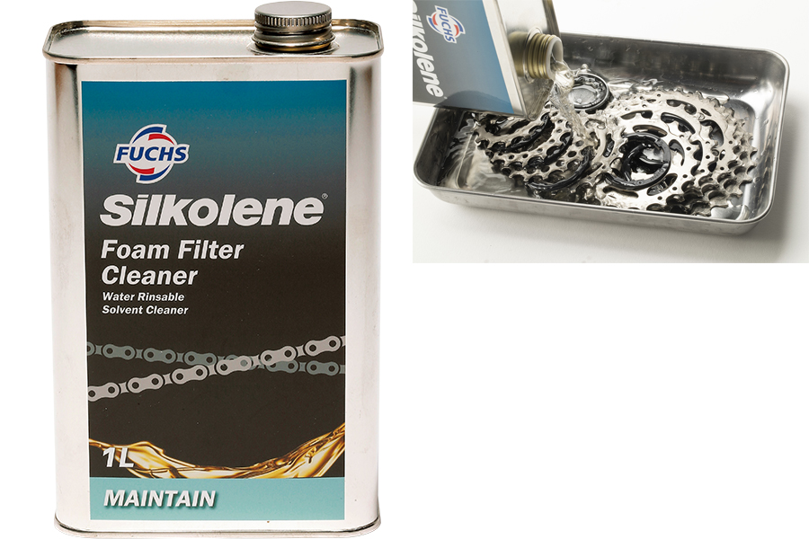 チェーンに限らず、バイクメンテナンスで欠かせないのがクリーニングだ。ここではバイク全体をきれいにするウォッシュオフと、より強力な油汚れを落とすフォームフィルタークリーナーを紹介する。