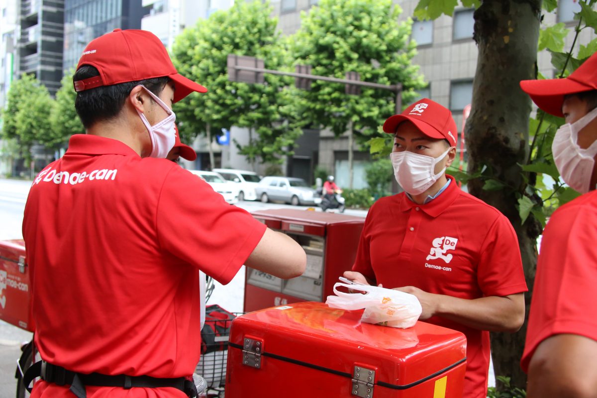 自転車デリバリーについては、出前館では研修を実施し、さらに雇用関係となるため万が一の事故に備えての保険についても会社負担となる。6月28日、東京・日本橋で新田、小林、長迫の3選手は研修を受けた。