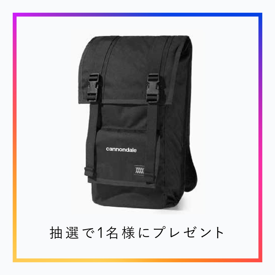 これを記念して、本日から7月31日までの期間、キャノンデール・ジャパン公式アカウント @cannondalejapanをフォローし、1万人達成の投稿にいいね!してくれた方の中から抽選で1名に、日本未展開商品の「Mission Workshopコラボレーションバックパック」をプレゼントするキャンペーンが実施される。