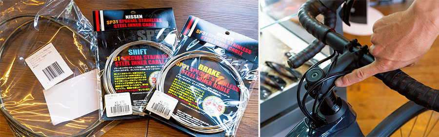 フリクションロスの少ない日泉ケーブルへの交換は部品代1万円程度のアップグレード。ブレーキやシフトの操作が重いと正確性が失われるだけでなく、長時間のライディングでは疲れも出てきてしまうため、解決すれば快適な走りができる