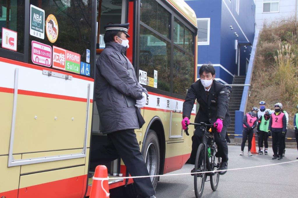 今回、新たに追加された講座内容では「バスドライバー視点の死角体験と」題し、吉村健央さんはじめ西東京バスのスタッフによる自転車に乗る際の注意点が解説された。