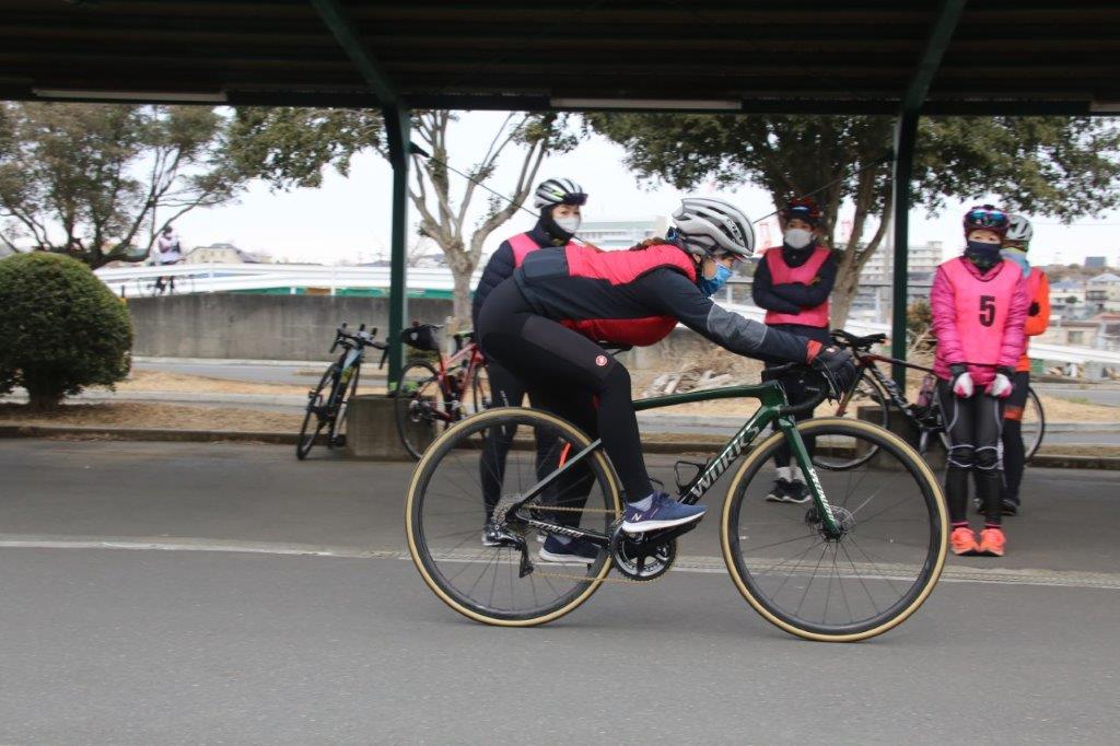 今回のスクールでは定番となるレース向けの講座から、ロードバイク初心者やフラペ女子向けのスクールも開催された。初級者向け講座ではバイクの上でニュートラルポジションをとる基本からはじまり、ブレーキやコーナリングなどが丁寧に行わる。いっぽうレース向けの講座では集団走行ができるように、集団走行の練習が行われた。