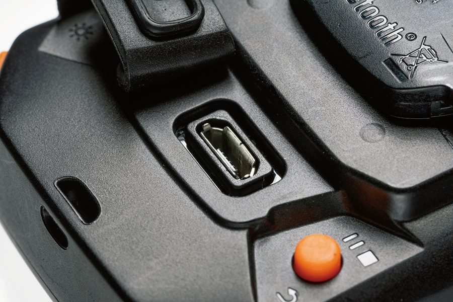 マイクロUSB端子による充電ポートは、本体裏側のゴム部分下にある。
