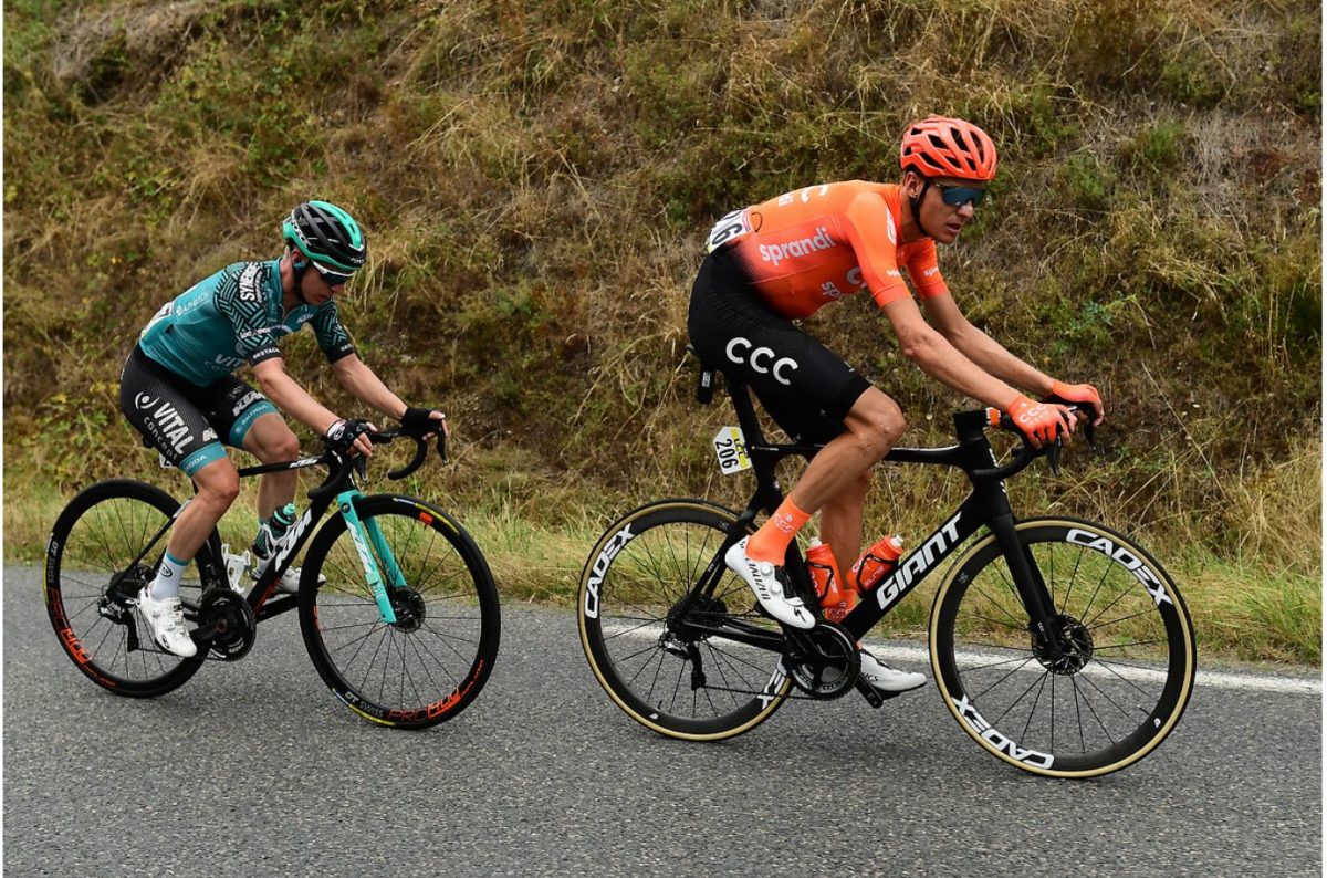 2人で先頭を行くミヒャエル・シェアー(CCCチーム)とトムイェルト・スラフテル(B&Bホテルズ・ヴィタルコンセプト) PHOTO:A.S.O./ Alex Broadway
