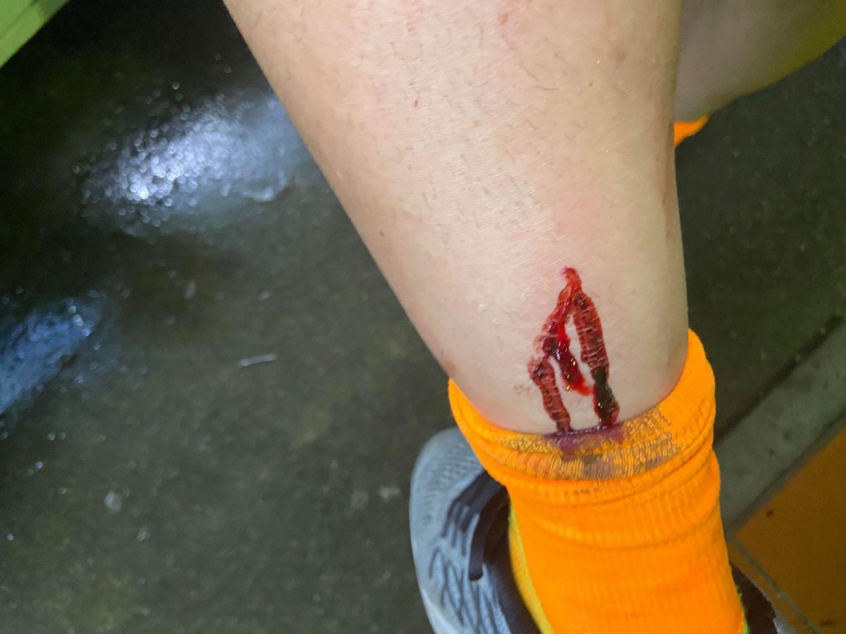 取材にあたっていた本誌山口がレース後に足元を見ると謎の出血をしていた。これはヒルによる被害。