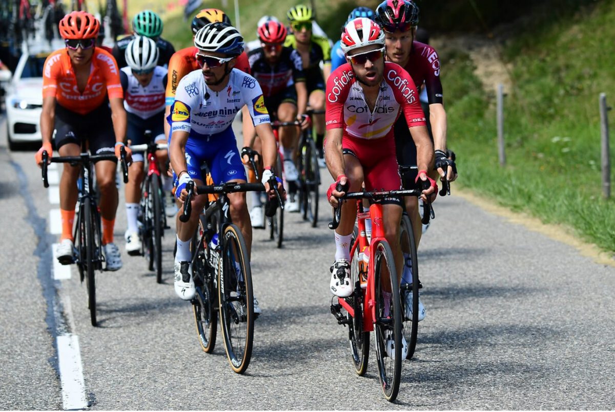 149人のプロトンはユジーヌをスタート。トーマス・デヘント(ロット・スーダル)のアタックを皮切りに、序盤から逃げ集団を形成しようというライダーたちのアタック合戦が繰り広げられ、最初の2級山岳プランボワ峠の上りでデヘントとケムナ、ルイスレオン・サンチェス(アスタナ)、ミハウ・クフィアトコフスキ(チームイネオス)、ジュリアン・アラフィリップ(ドゥクーニンク・クイックステップ)、ダビ・デラクルス(UAEチームエミレーツ)ら15人の逃げ集団が形成された。
