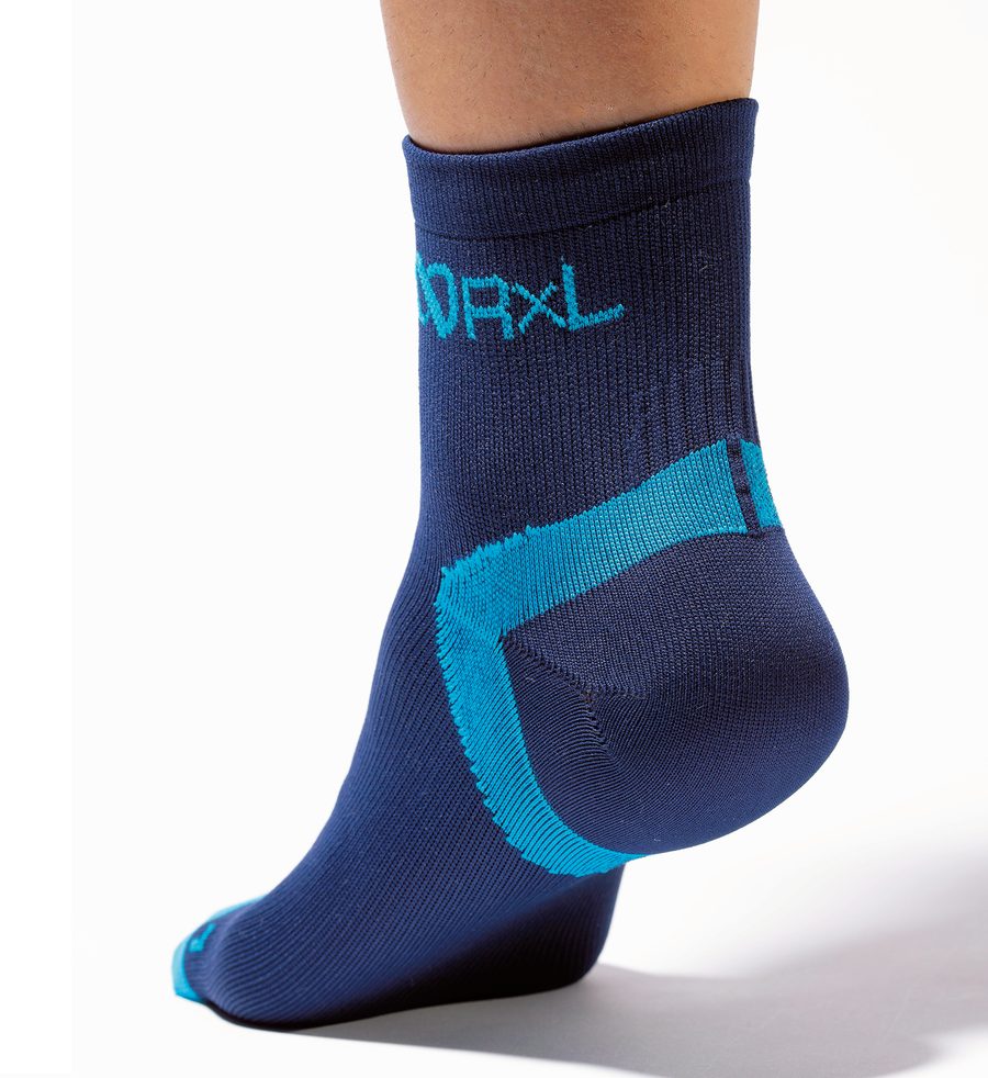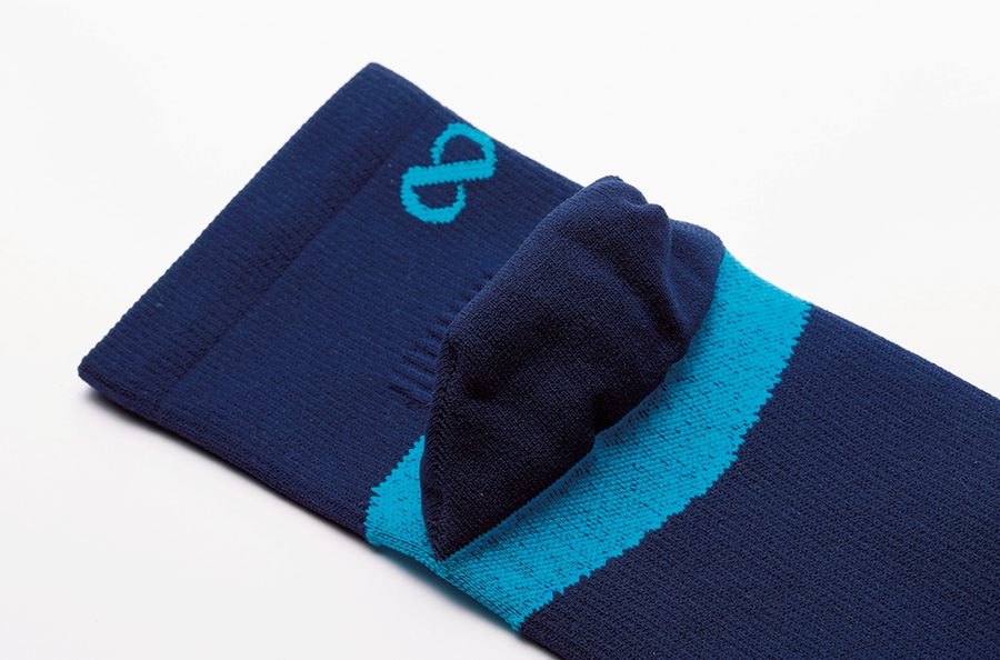 ネイビー/サックスのほか、ブラック/グレー、レッド/ブラックをラインナップ。機能系ソックスとしてはややカラバリ多め。ウエアやシューズのカラーと合わせよう。