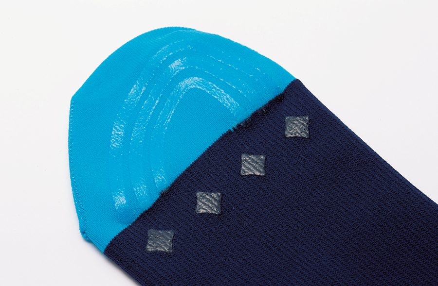 元五輪選手と試行錯誤し開発したグリップ配置。適切なグリップ力で、インソールとの位置関係を適切に保つ。