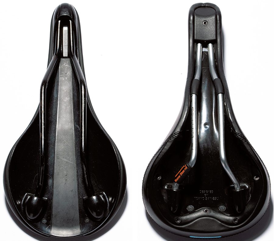 レールの幅が通常よりも細いナローサーティーシリーズ。専用のシートポストが必要となるけれど、使用すると「ペダリングが上手くなった!?」と思うほど、脚がよく回る。ケイデンスもラクに上がり、軽い踏み心地で走れるようになる。じつは昨年出した、スマートコーチング安藤隼人さんの「ロードバイク速効上達本」の取材のなかで、一般女性がこのサドルに交換した前後をリオモで計測。すると「パワーに変化はないけど、腰まわりの筋肉の連動がよくなったとみられる」という考察がでていた。「連動がよくなっている=脚がよく回る」ってことなんじゃないかな!