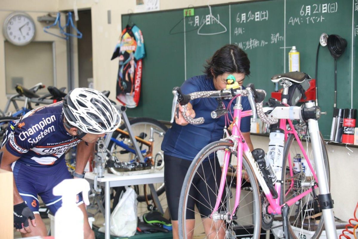 NUMAZUサイクルステーション静浦東の蠣崎さんはプロチームのメカニック経験ももつ。何かあれば簡単なメンテナンスも受けられる。