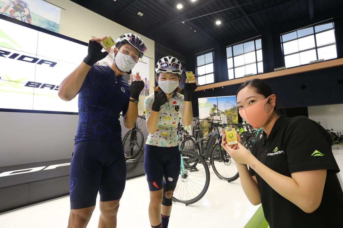 そして、狩野川を渡ればゴールのメリダXベースに到着だ。ここで最後のチェックインをすませば、サイクルボールをゲットしたことになる。