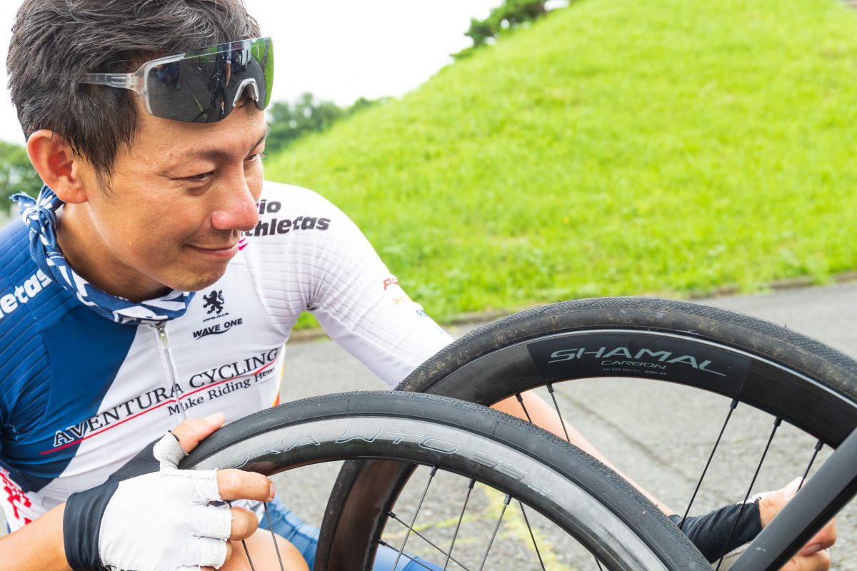 ワイド化したことで軽やかな走りと安定感を両立、さらにローハイトなので走りにキレがあり、ダンシングでは振りが軽いのが特徴だ。横風の影響を気にせずにイメージ以上の巡航性能を楽しめる。従来のシャマルは反応性が高く、シャキシャキとしたレーシングイメージが強かったが、今回リムをカーボン化したことで路面からの衝撃を穏やかに伝えてくれるシルキーな乗り心地へと進化した。さらにハンドリングに余裕があるため、荒れた路面でもコントロールしやすい。ヒルクライムから緩急のあるレース、さらにグラベルまでこのホイールの活躍するシーンは幅広い。