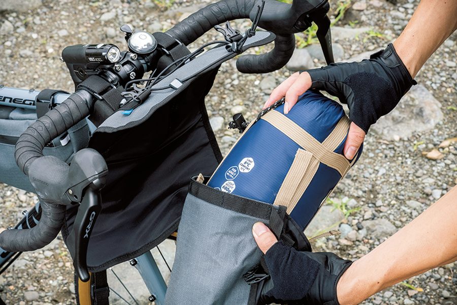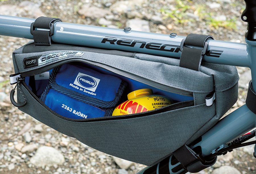 荷物満載のキャンプツーリングなら、これらのパッキングバッグ類をフル装備して積載量を大幅にアップ。日帰りロングツーリングならトップチューブバッグにモバイルバッテリーを入れてスマホやサイクルコンピューターを充電、というような使い方もできる。