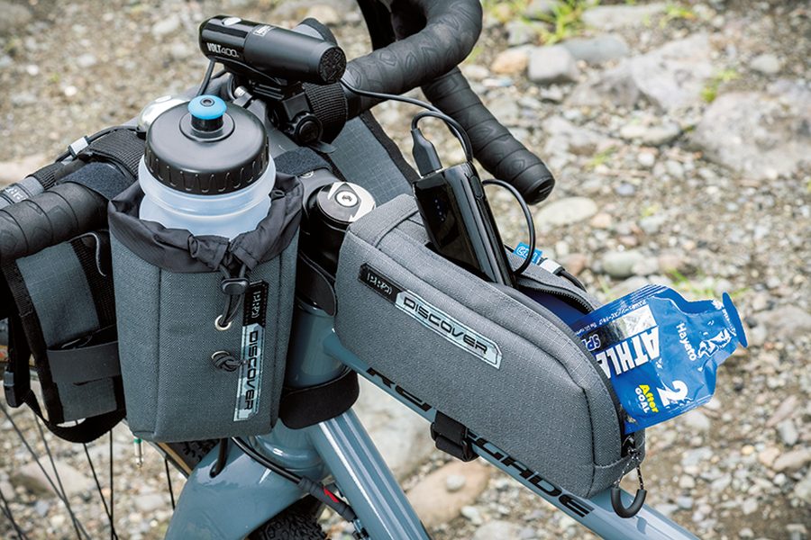 ディスカバーシリーズのバッグ生地は耐水仕様なので、悪天候下やグラベルライドでも安心だ。自身のスタイルによってバッグを使い分けよう。