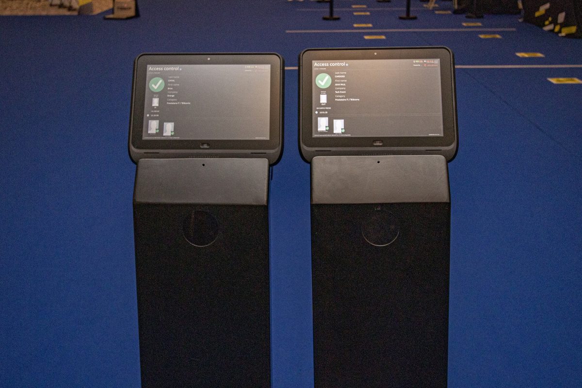 プレスIDをかざして行動管理が行われている