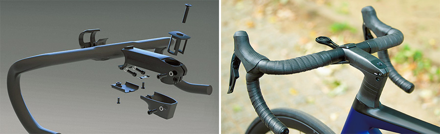 最後に、トップグレードのSLR01には、完成車で4モデルがラインナップされるが、ステム一体型ハンドル「ICSカーボンコクピット」は完成車で140万円(税抜)のSLR01ワンモデルとフレームセットで58万円(税抜)のSLR01モッドのみに付属する。のみに付属する。