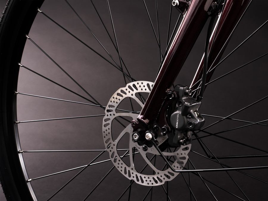 雨による制動力の低下を最小限にし、安心して運転できる油圧ディスクブレーキを採用。ブレーキパッドの耐摩耗性が高く、毎日使う通勤に最適のブレーキです。