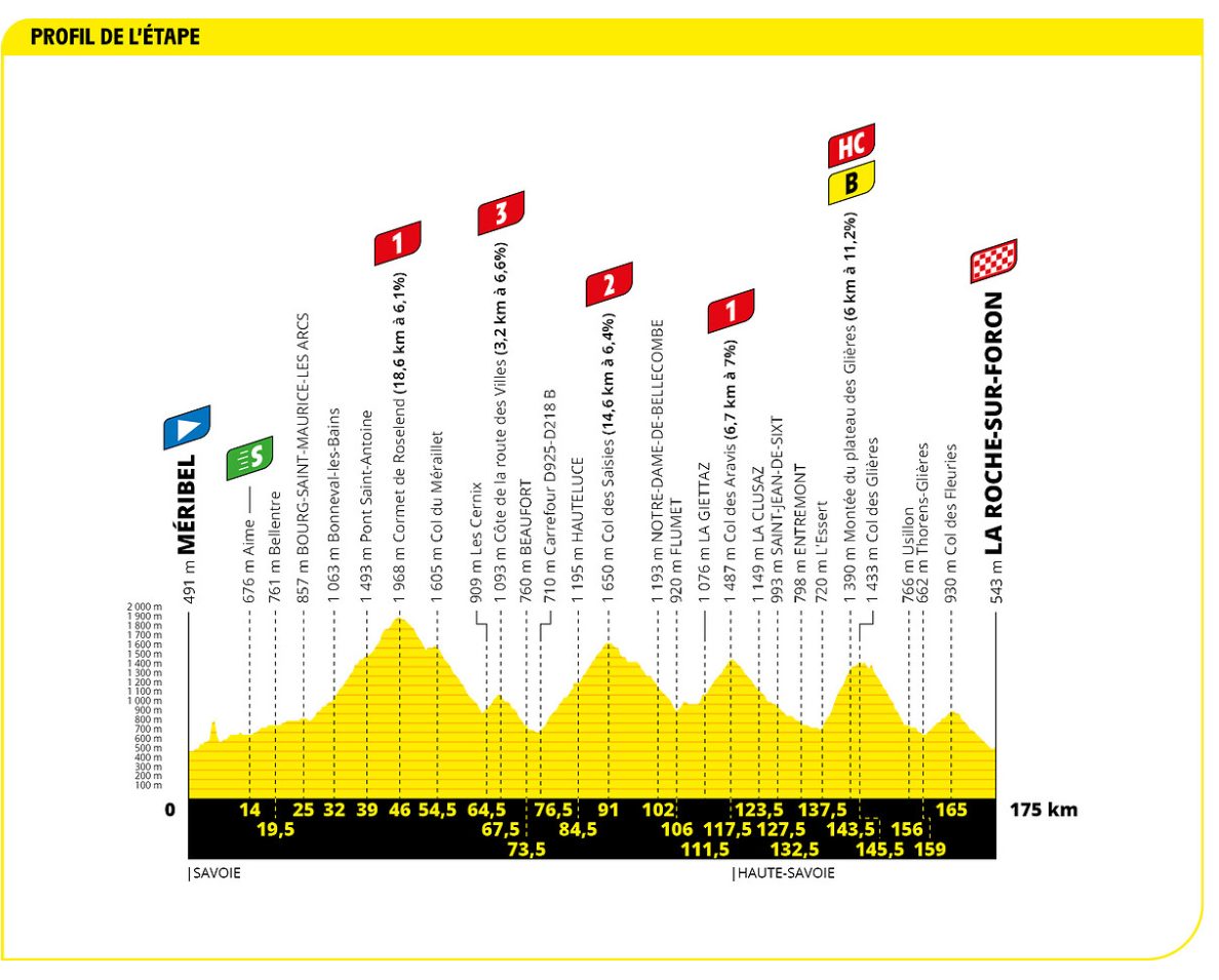 1級山岳2つ、2級山岳と3級山岳が1つずつ、最後に超級山岳を越えてフィニッシュとなる第18ステージ。5つのカテゴリー山岳が設けられたアルプス山岳ステージは、獲得標高4000m、超級山岳プラトー・デ・グリエール(距離6km、平均勾配11.2%)の直後には1800mの未舗装区間も登場する厳しいコースだ。