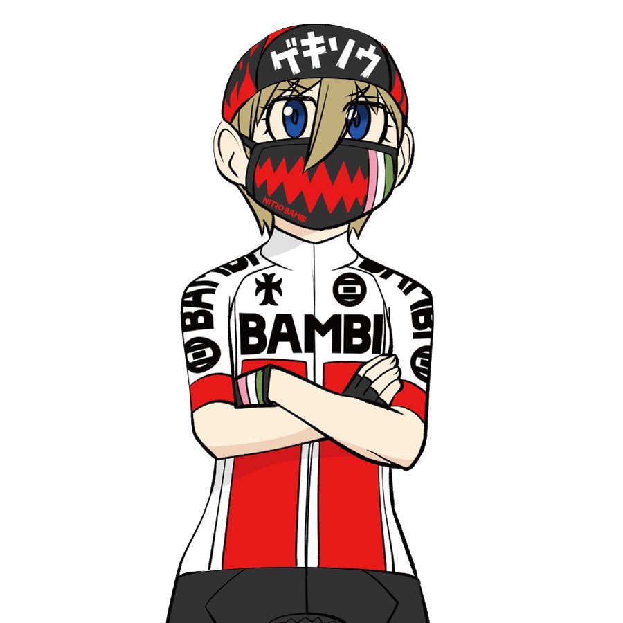 漫画「サイクル。」主人公の三色団子(みいろまるこ)と仲間たちによって結成されたチーム「NITRO BAMBI」のサイクルウエアシリーズとしてマスクが新登場。UPF45の日焼け防止機能を備え吸汗速乾素材を使用。両紐部に長さ調整ができるストッパーパーツがあるため耳が痛くなりません。昇華転写プリントのため通気性を損なうことがありません。洗濯が可能なので衛生的です。センター部分の縫い代に伸び止めテープを入れているので呼吸がしやすい仕様です。