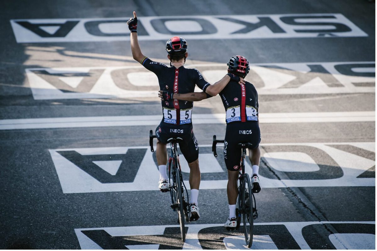 第18ステージのアルプス山岳ステージ最終日、イネオスのカラパスとクフィアトコフスキがレース終盤に2人で逃げを決め、そのままフィニッシュへ。2人は互いの健闘を称えるように、肩を抱き合ってワン・ツーフィニッシュしました。