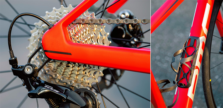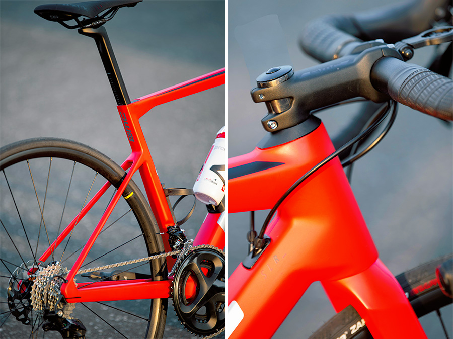 右/スケルトンは上位モデルSLR01と同様としつつ、機械式コンポーネントにも対応。ブレーキケーブルはダウンチューブ上部で内装され、スマートなルックスを実現