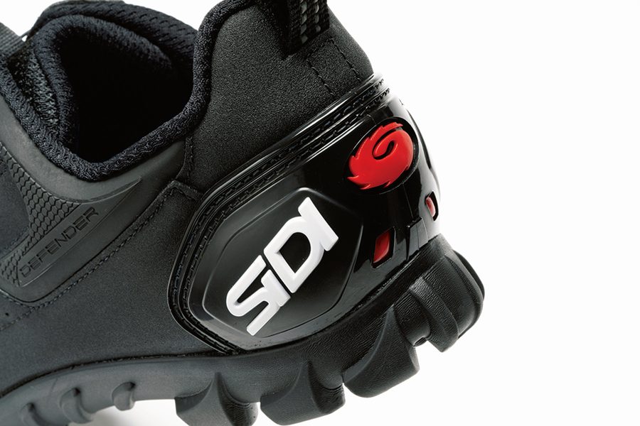 愛用してきたシディ・MTB SD15のソールが減ったので、このディフェンダー20に換えてみた。この2つの価格は同じ。違いはSD15がダイヤル式ファスナーのテクノ3システム+ベルクロなのに対し、ディフェンダー20はすべてテクノ3システムであること。甲の締め込みが均一になり、ルックスもスマートになった。アッパーの穴も多くなって通気性も向上している。ほかにも細かいデザインに違いが。このシューズはMTBシューズでありながら、ソールが柔らかいので歩行が非常にラクだ。さらに見た目が細身で黒一色なので、ジャージ&レーパンに合わせると、まるでレーサーシューズに見える。SD15はツーリングもロングライドイベントも、すべてこの一足でこなしてきた。SPD対応だが慣れるとこれでまったく問題ない。それよりも現場で歩けるメリットのほうがずっと大きい。ハッキリ言ってこのシリーズにベタ惚れです。